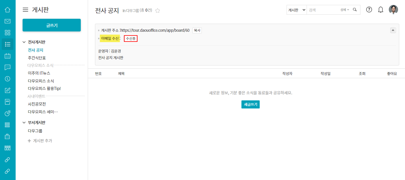 - 이메일 수신 기능을 이용하여 신규 게시물이 등록될 때마다 사용자가 이메일 알림을 받을 수 있도록 설정할 수 있습니다.