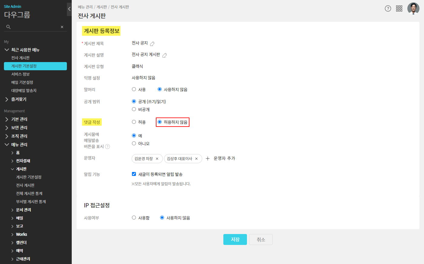 <게시판 댓글 작성 기능 비활성화 방법 : 전사 게시판>