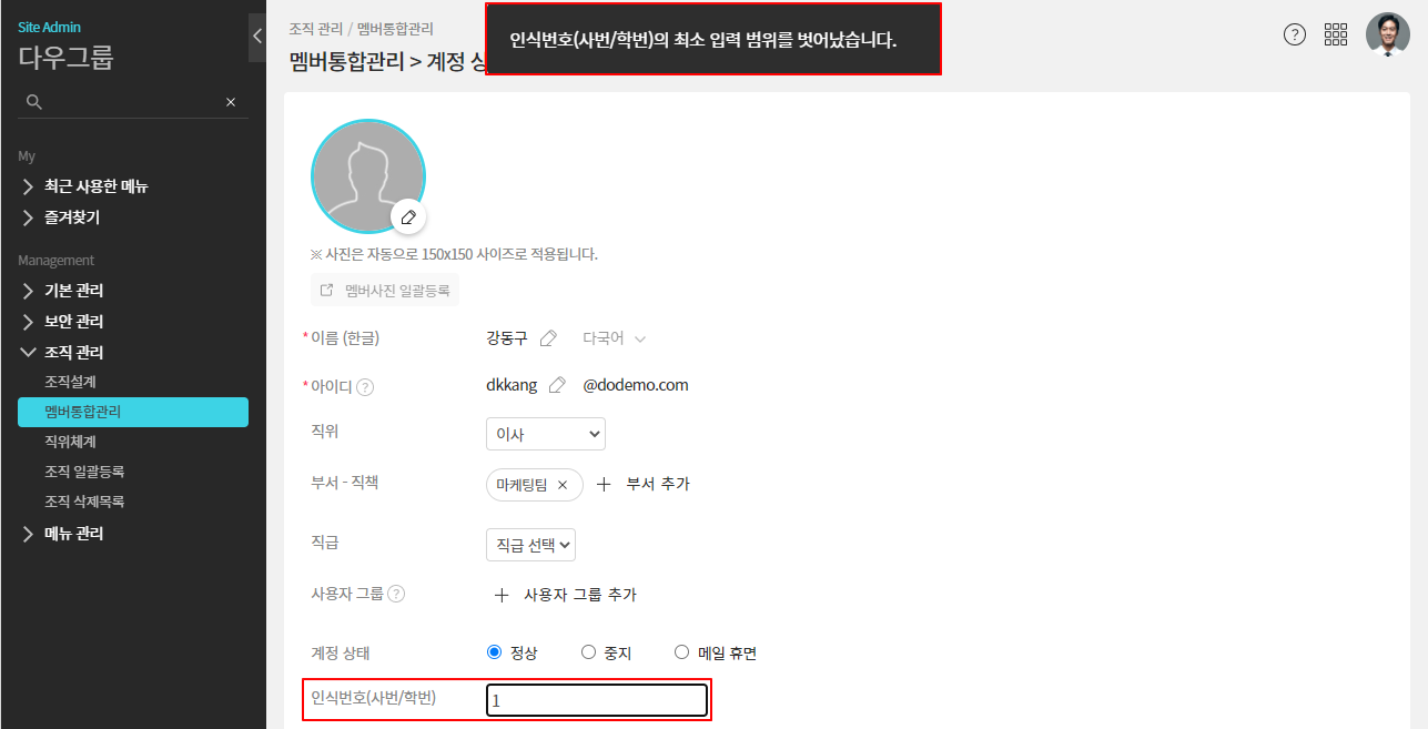 ■ 요약 인식번호는 최소 2자리 이상 최대 64자리 이하로 입력하여야 합니다.범위를 벗어나서 입력한 경우, 경고 문구가 표시됩니다.