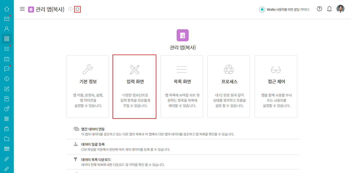 ① 앱 관리 ▶ 입력 화면