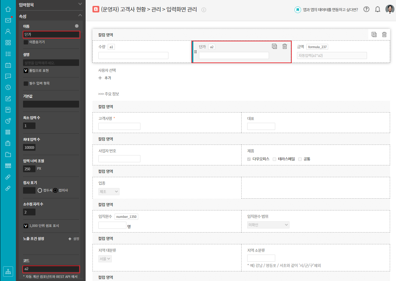 <수량*단가 자동계산 설정 방법>