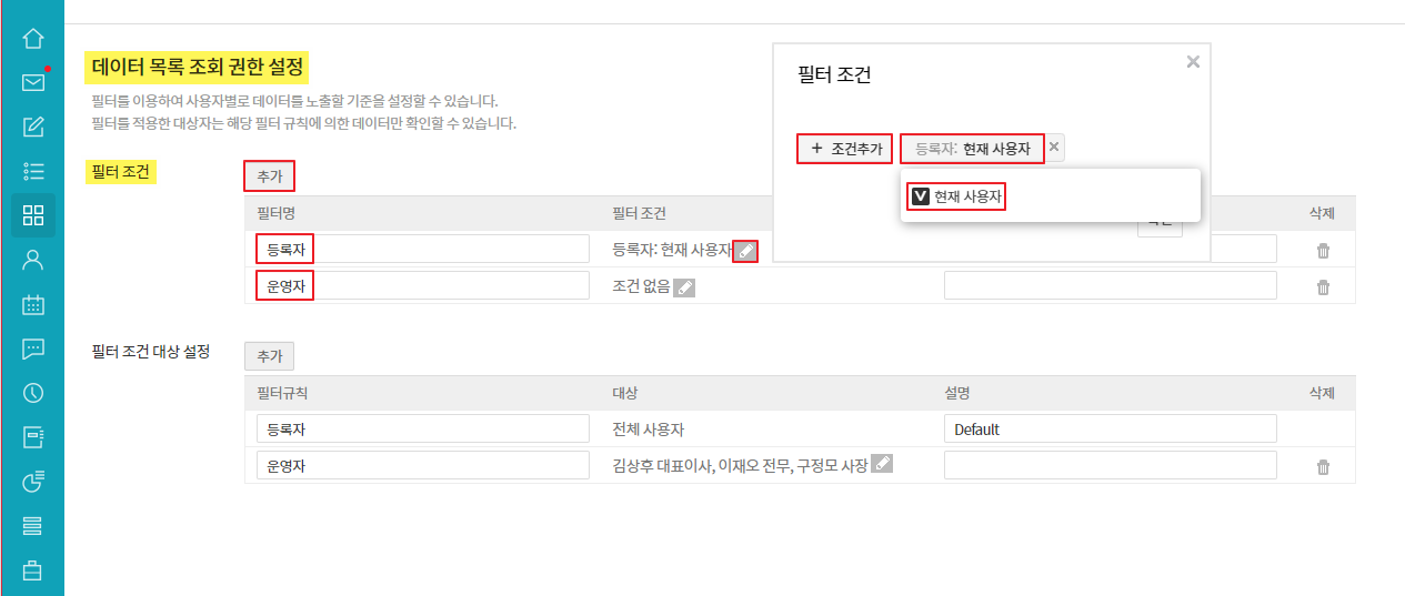 ② 데이터 목록 조회 권한 설정 ▷ 필터 조건 ▷