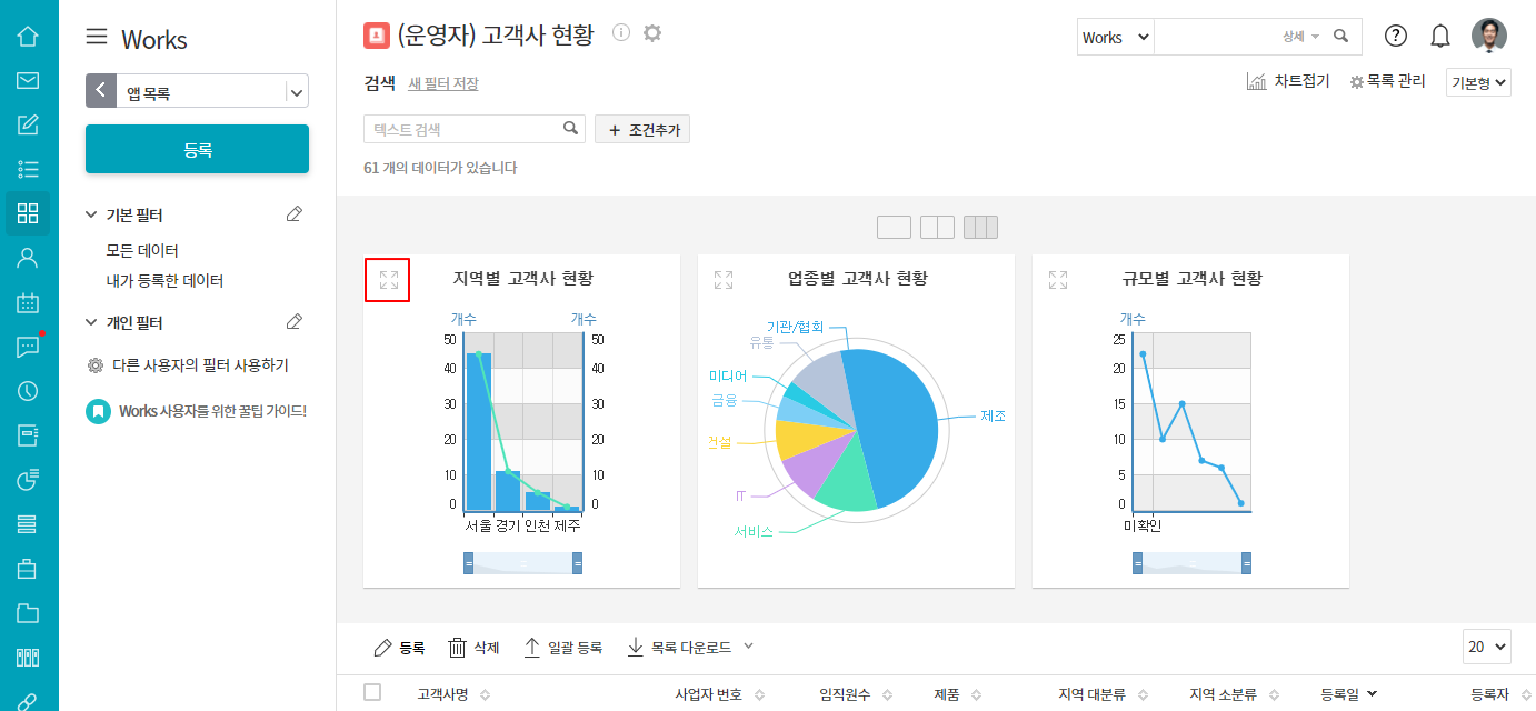 ① 차트를 개별로 확대하여 볼 수 있나요?