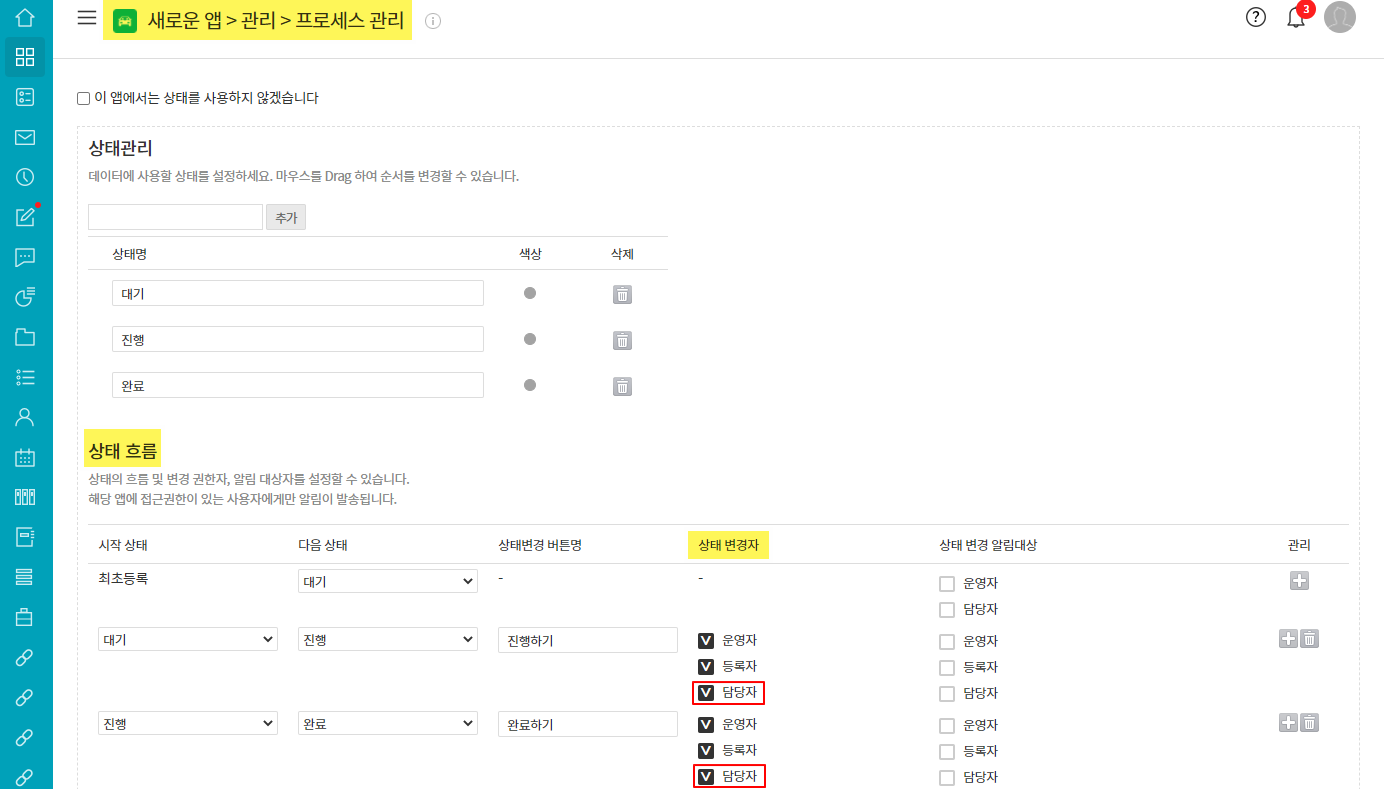 ③ 앱 관리 ▶ 프로세스 ▶ 프로세스 관리 ▷ 상태 흐름 ▷ 상태 변경자 ▷ 추가된 항목 확인