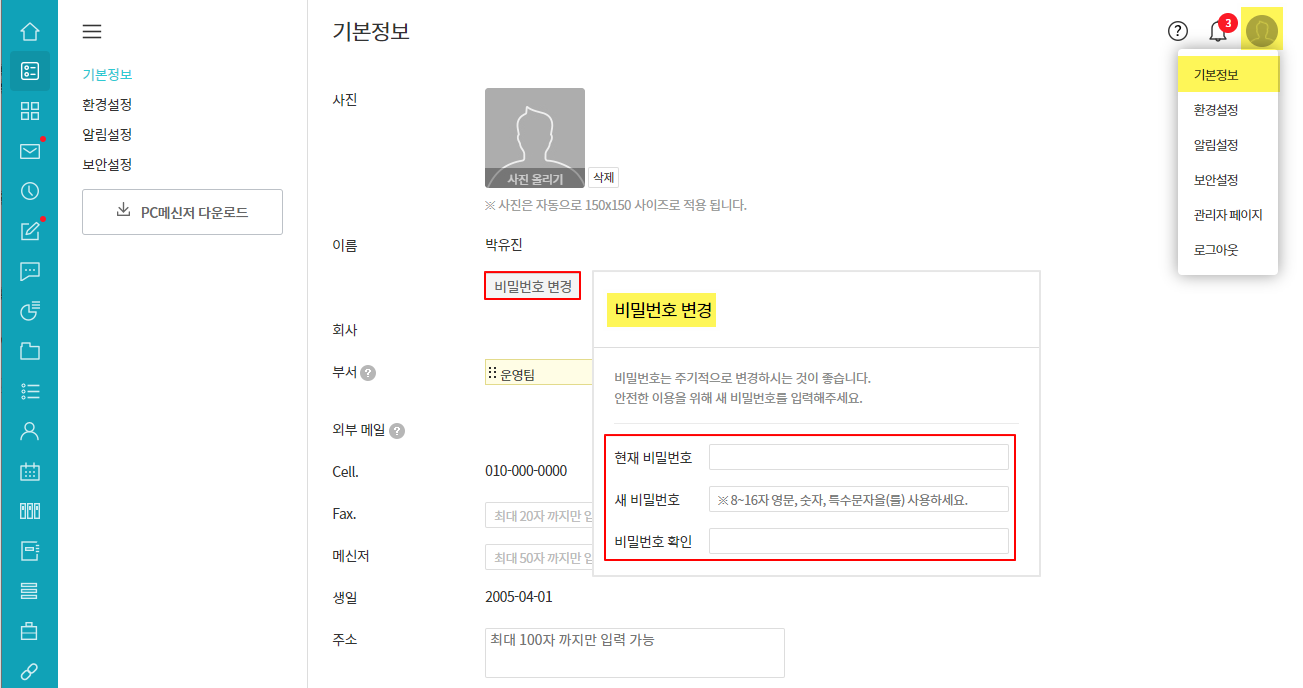 - 관리자 권한으로 직원들의 비밀번호를 직접 변경할 수 있습니다.