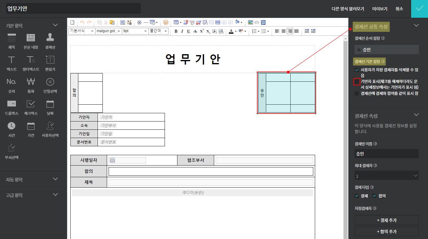 <결재선 기안자 표시 해제 방법>
