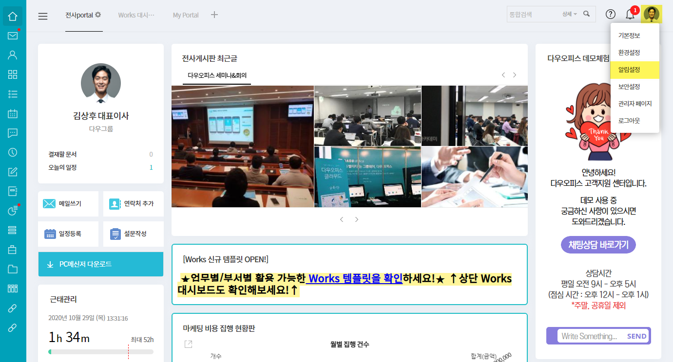 ① 우측 상단의 프로필 사진 클릭 ▶ 알림설정
