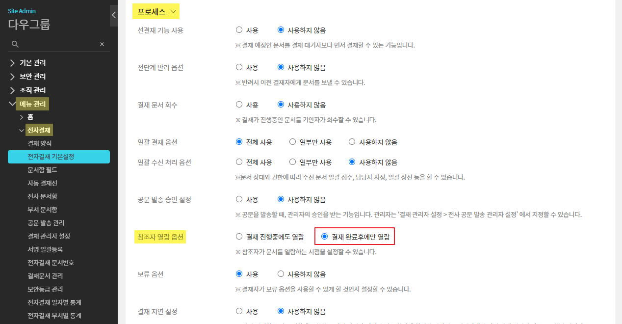 ▷ 프로세스 ▷ 참조자 열람 옵션 ▷ 결재 완료 후에만 열람