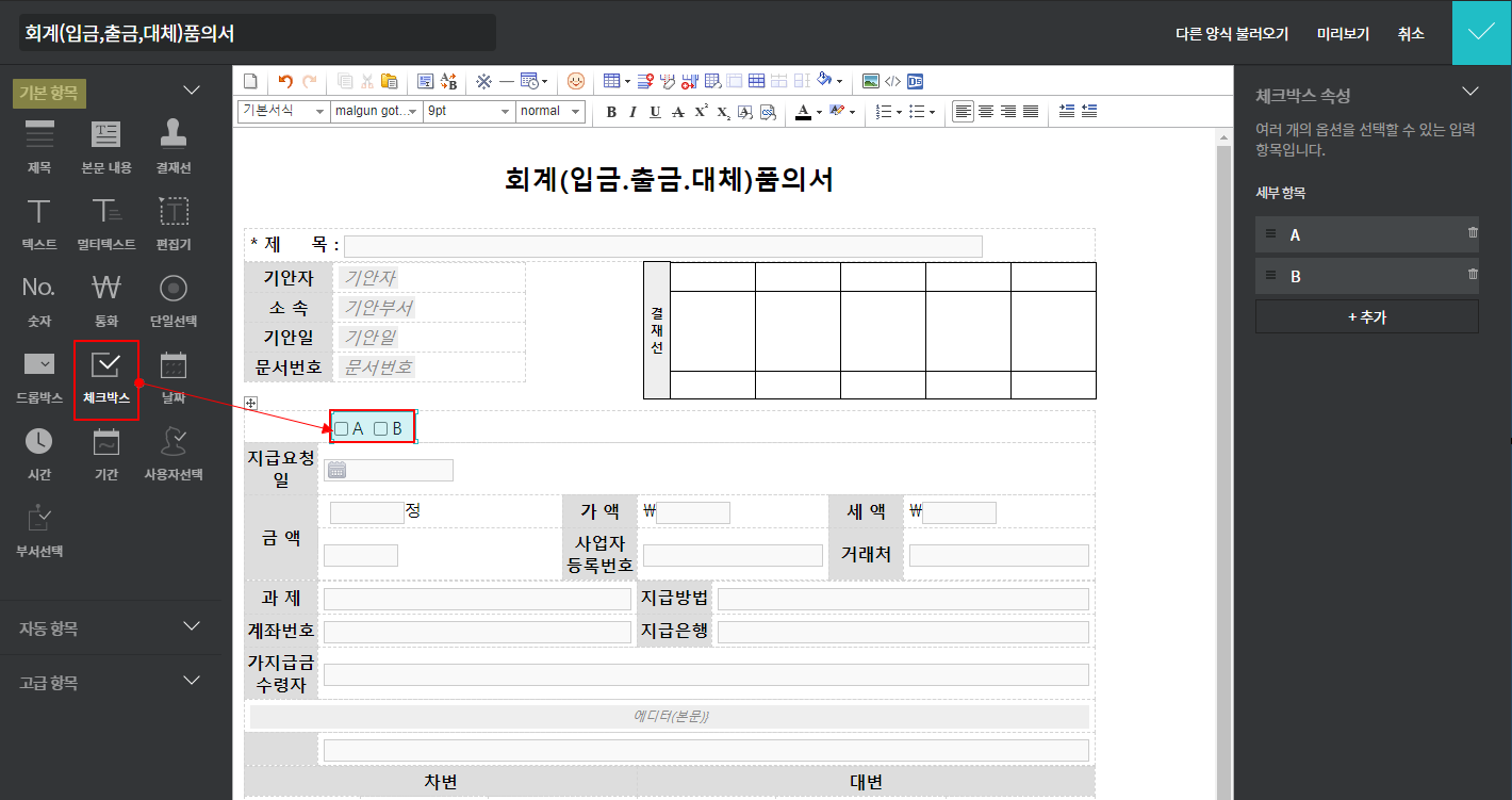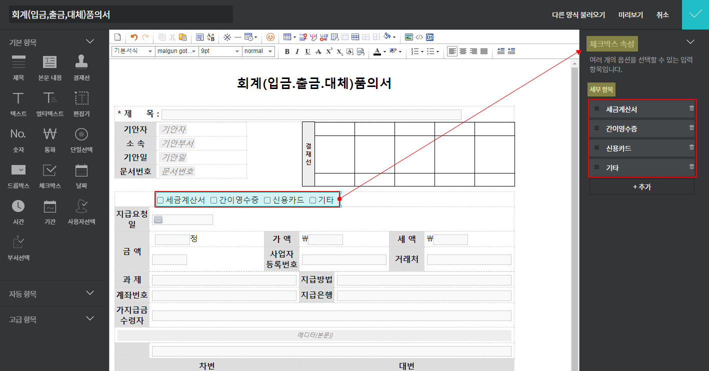 ③ 기본 항목 ▷ 체크박스 항목 추가