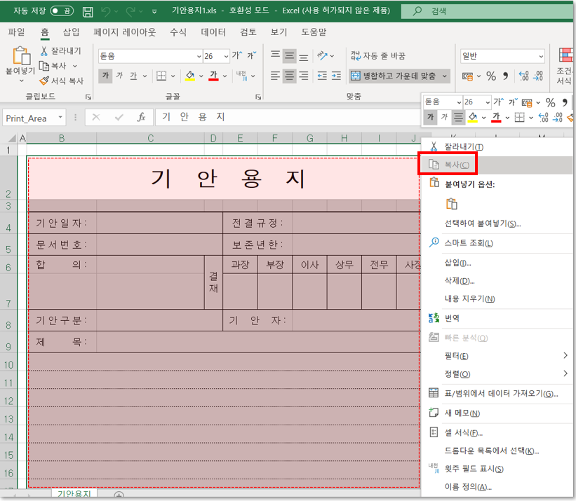 ① 엑셀파일 양식 선택 및 복사