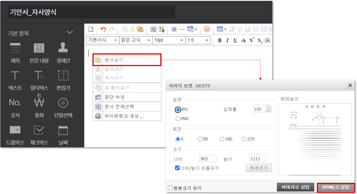 ※ 크롬 브라우저인 경우 [붙여넣기] 대신에 ctrl + v로 붙여넣기 합니다.