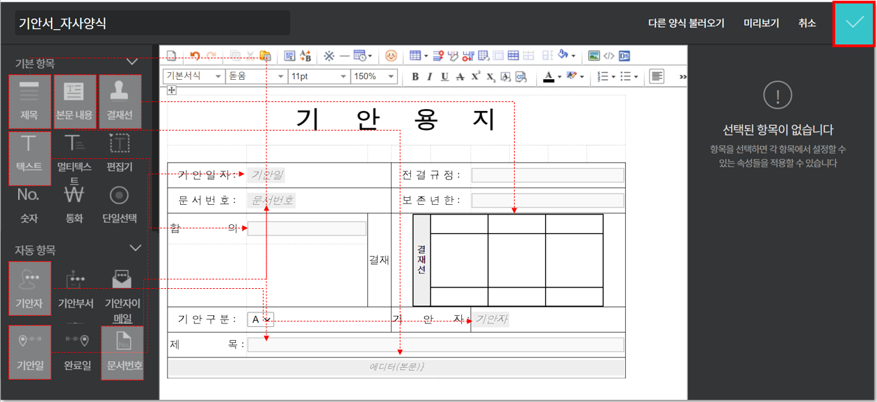⑤ 좌측에서 알맞은 항목 삽입 ▷ ✔ ▷ 저장