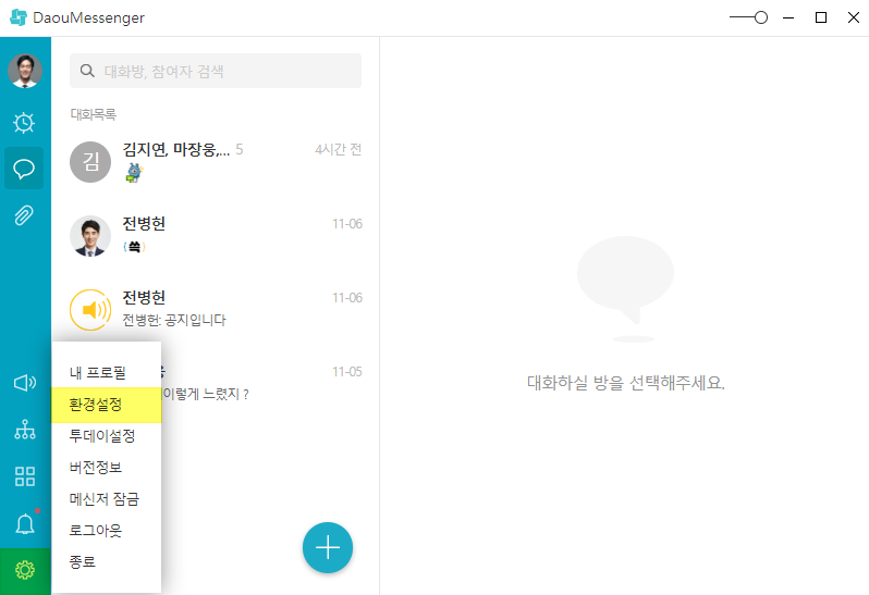 ① PC메신저 톱니바퀴 클릭 ▶ 환경설정