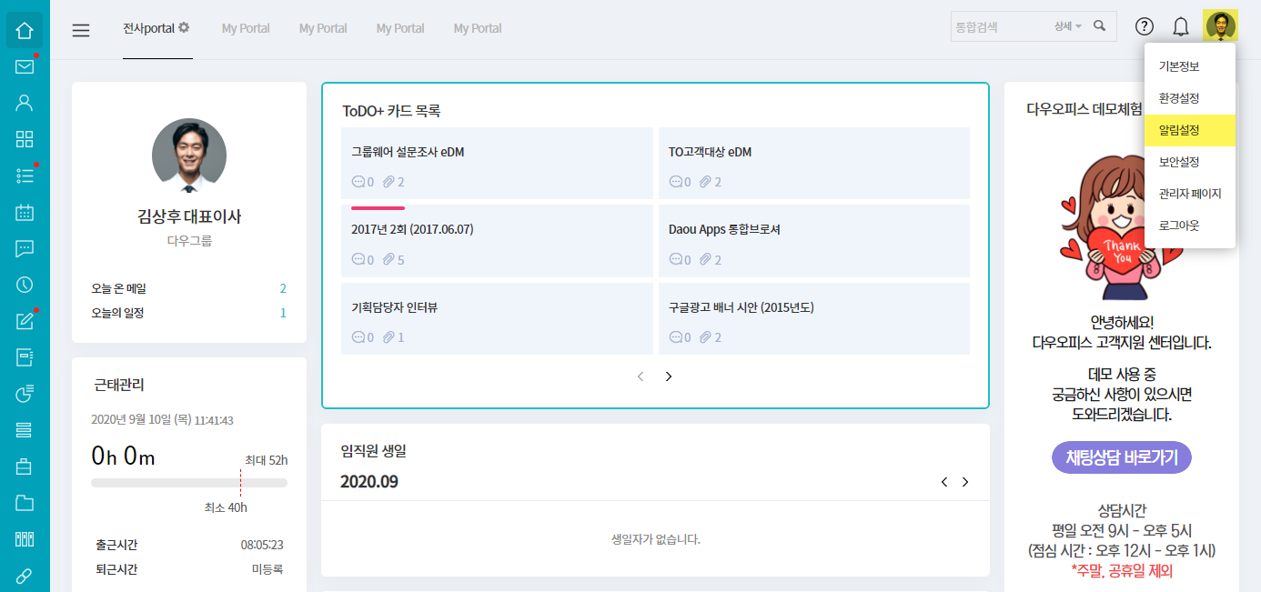 ① 우측 상단의 프로필 사진 클릭 ▶ 알림설정