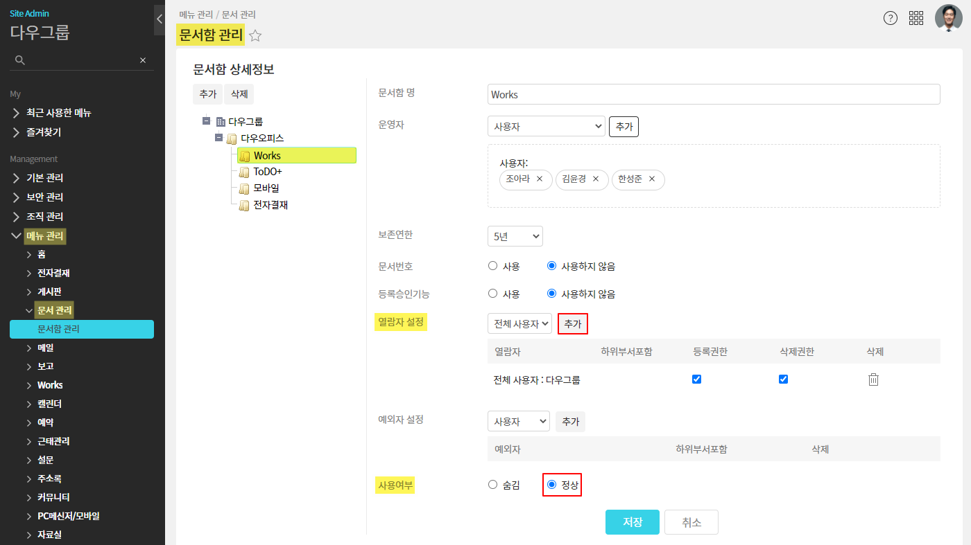 <열람자 설정 및 문서함 사용 설정 방법>