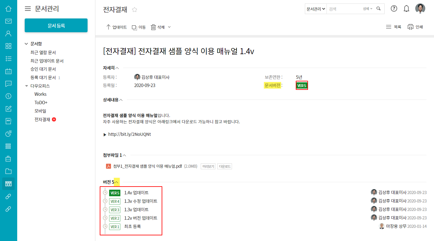■ 요약 버전이 많이 만들어졌을 경우 문서 내 하단에 버전이 내림차순으로 표시됩니다.