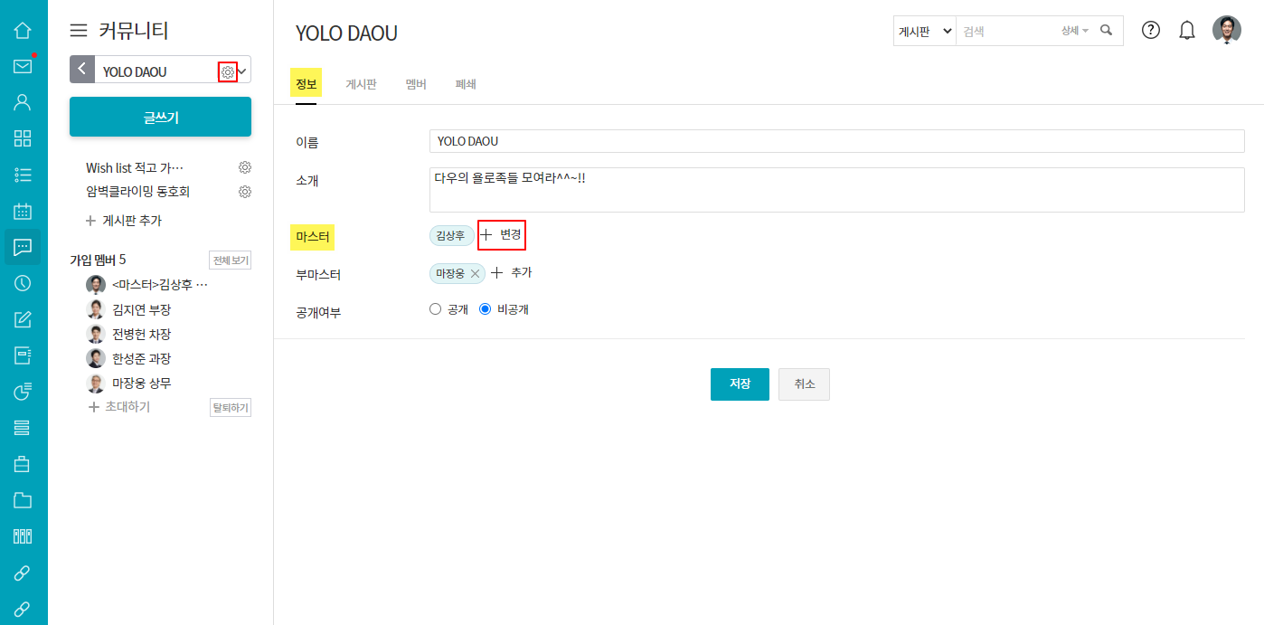 <커뮤니티 마스터 변경 방법 : 관리자>