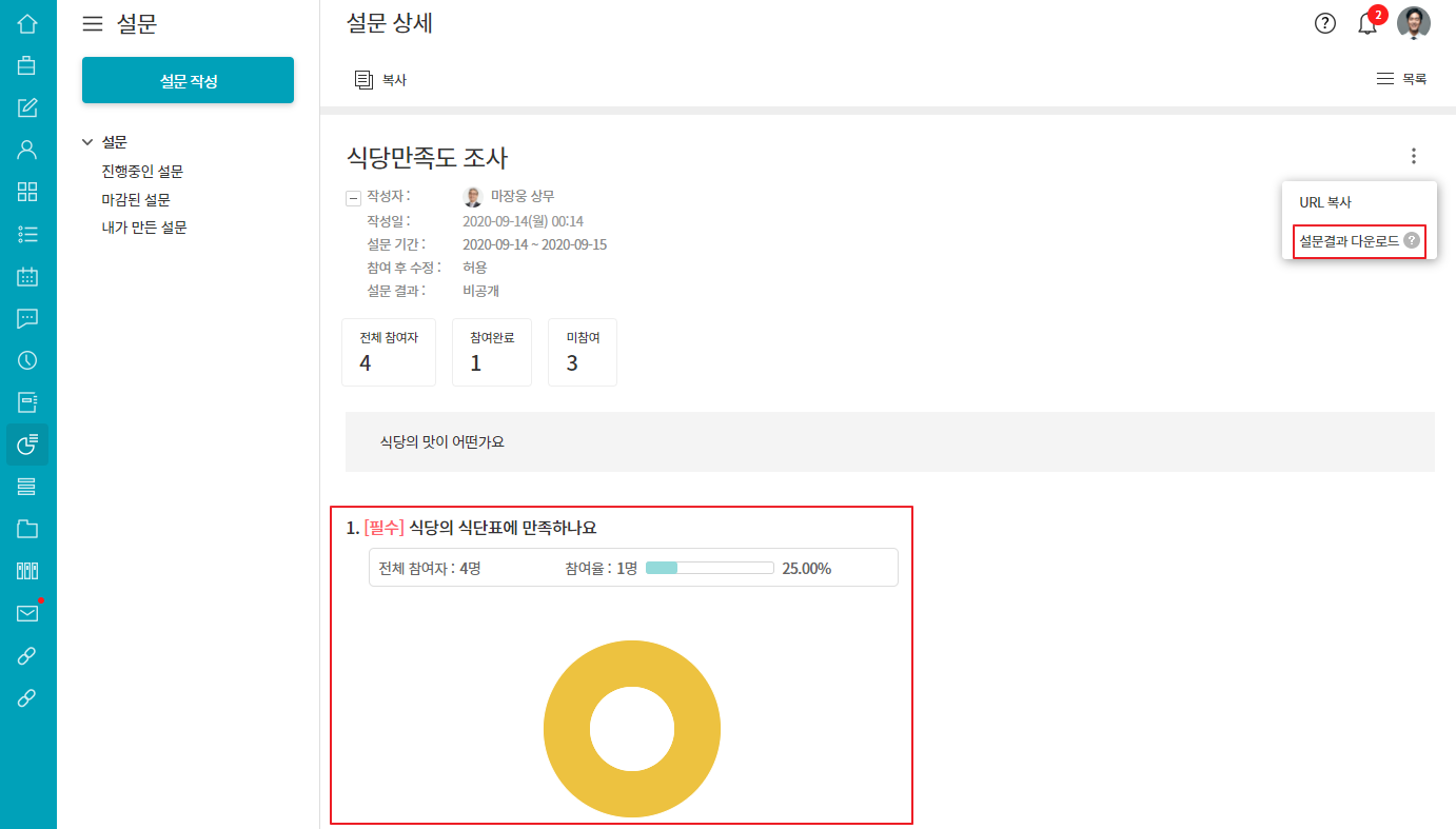 ■ 요약설문 작성자 외에 설문 결과 확인 및 다운로드 권한을 갖는 사용자입니다.