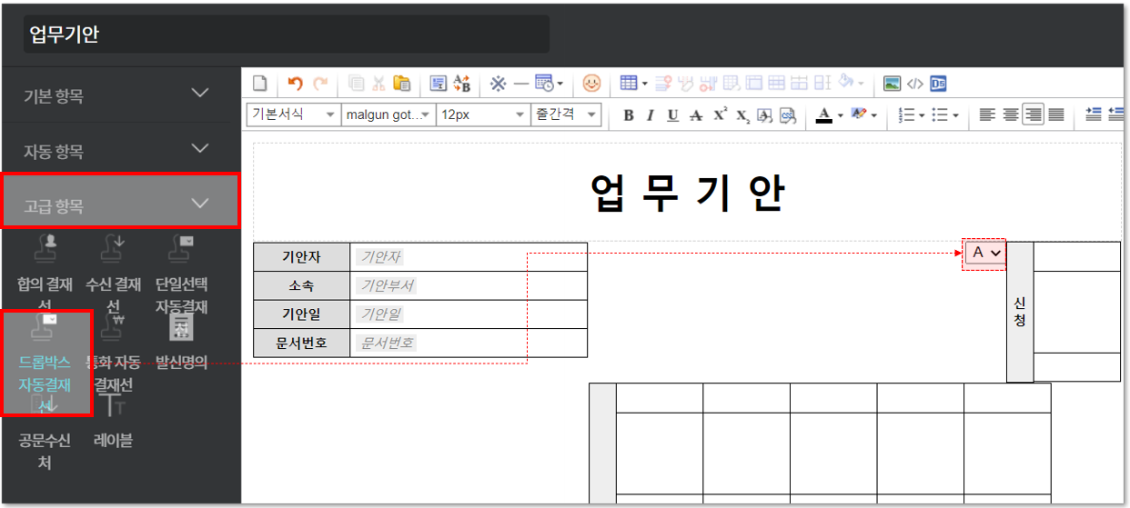⑤ 고급 항목 ▷ 드롭박스 자동결재선 삽입
