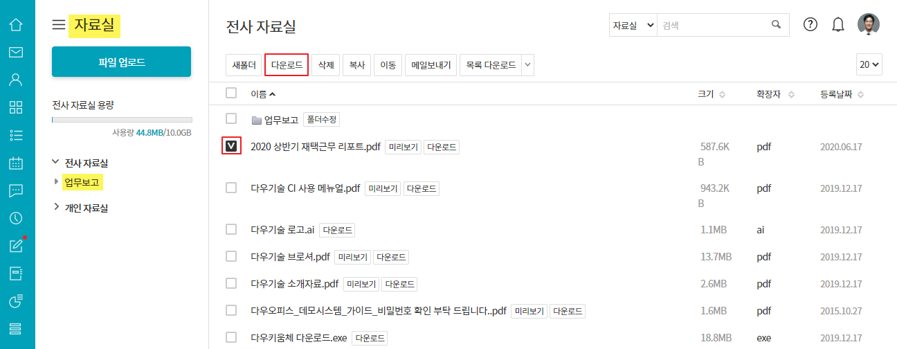 ① 개인 자료실에서 전사 자료실로 자료를 이동할 수 있나요?