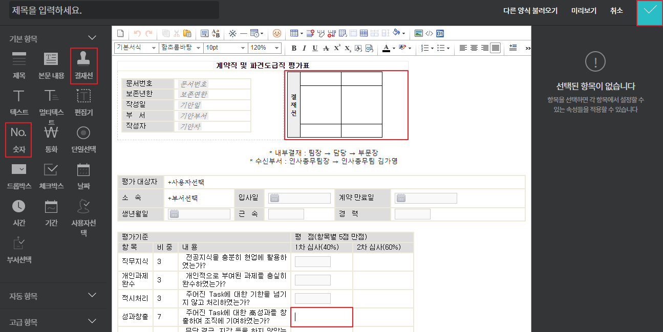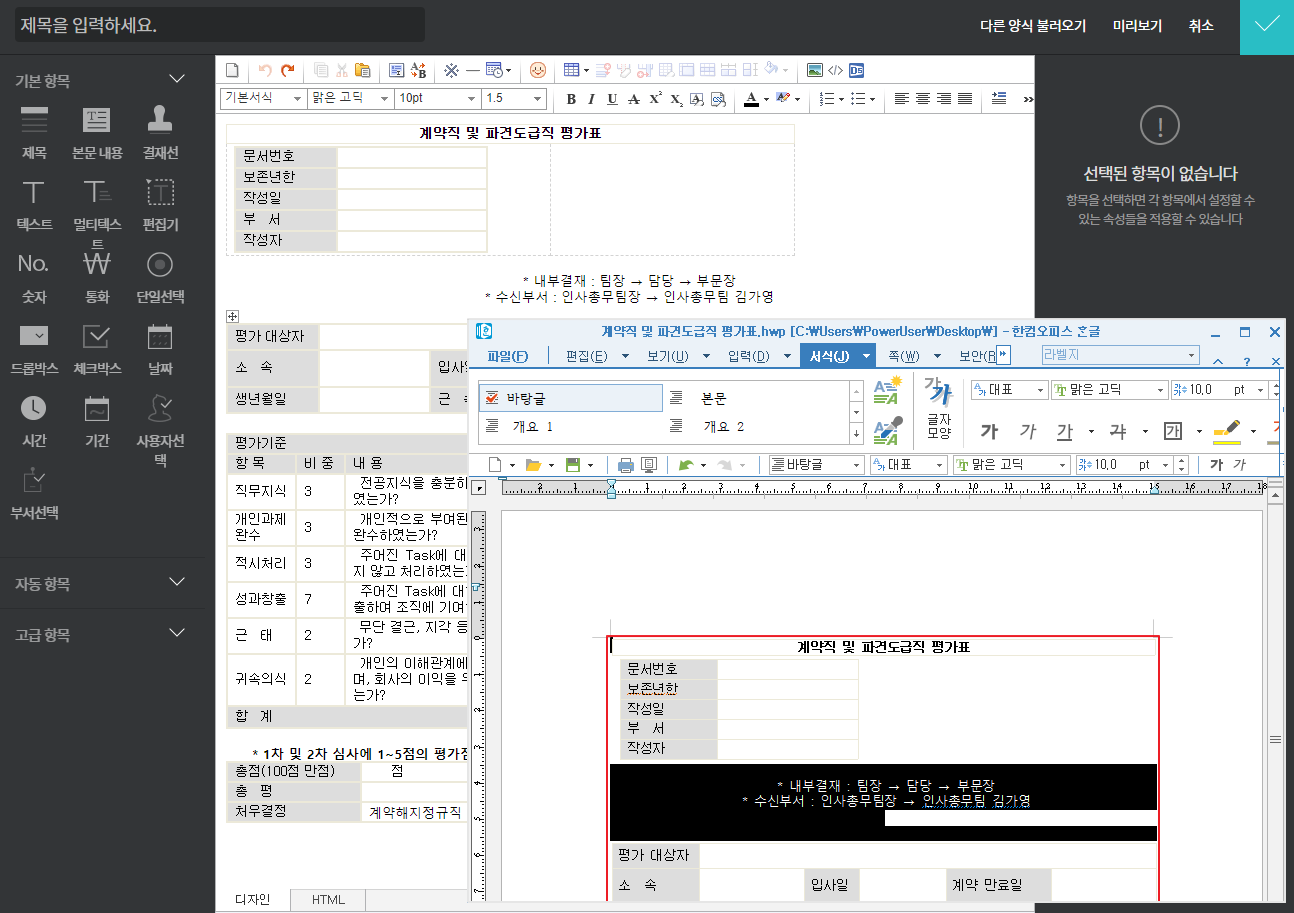 관리자 권한으로 한컴오피스 파일을 편집하여 전자결재 양식으로 추가할 수 있습니다.