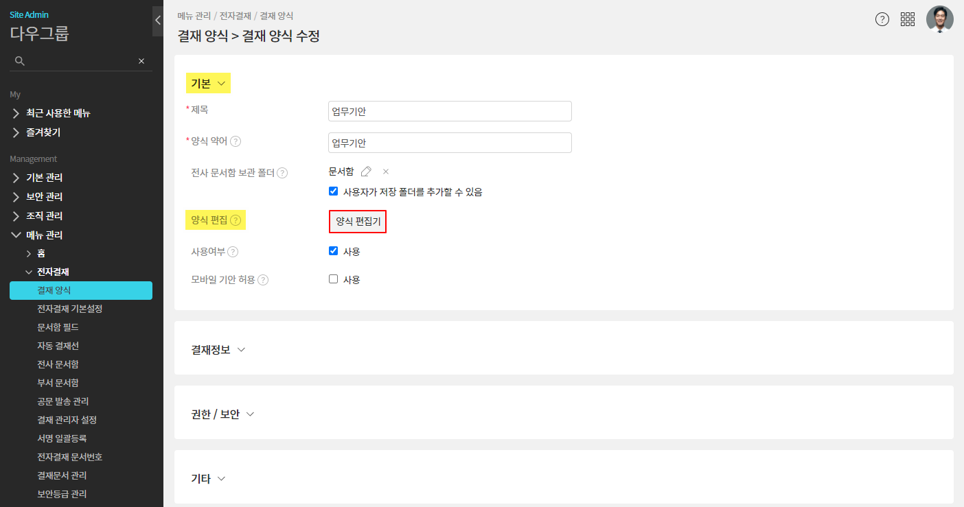 ② 기본 ▷ 양식 편집 ▷ 양식 편집기