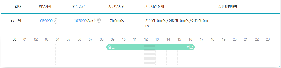 16:30 자동퇴근 기록