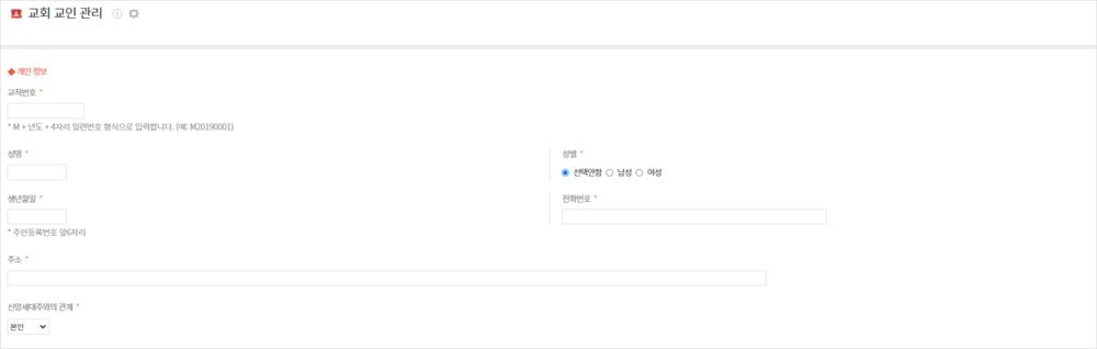 교회에 출석중인 교인들의 개인 정보와 소속 구역, 부서, 직분 등의 교회 활동 내역을 관리하는 앱입니다. 교회 관련 앱 개발 시 이 앱과의 연동을 통해 교인 정보를 보다 효과적으로 관리할 수 있습니다.