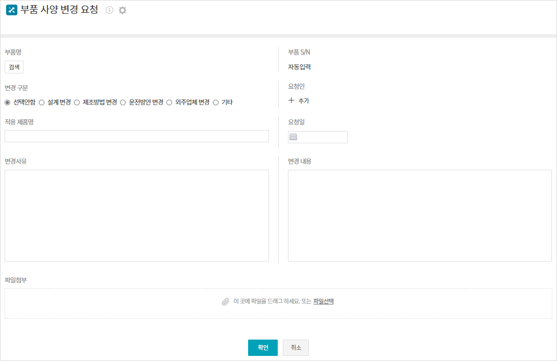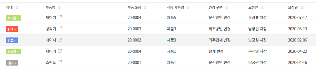 부품 사양 변경을 요청하는 앱입니다. "부품 관리" 앱과 연동처리 됩니다.