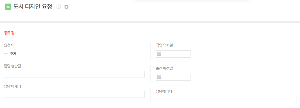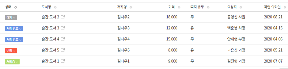 도서 디자인을 요청할 수 있습니다. "출간 도서 리스트" 앱과 연동처리되어 사용할 수 있습니다.