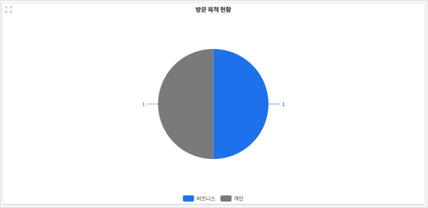 - 방문 목적 현황에 따라 그래프를 확인할 수 있고, 목록 표시로 한눈에 정보를 확인할 수 있습니다.