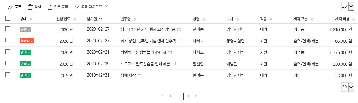 직원들이 발주가 필요한 주문제작 내역을 신청하고 이를 관리하는 앱입니다.
