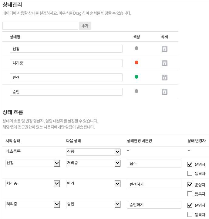 - 프로세스를 통한 상태 정의로 신청 건에 대한 진행상황을 파악할 수 있습니다.