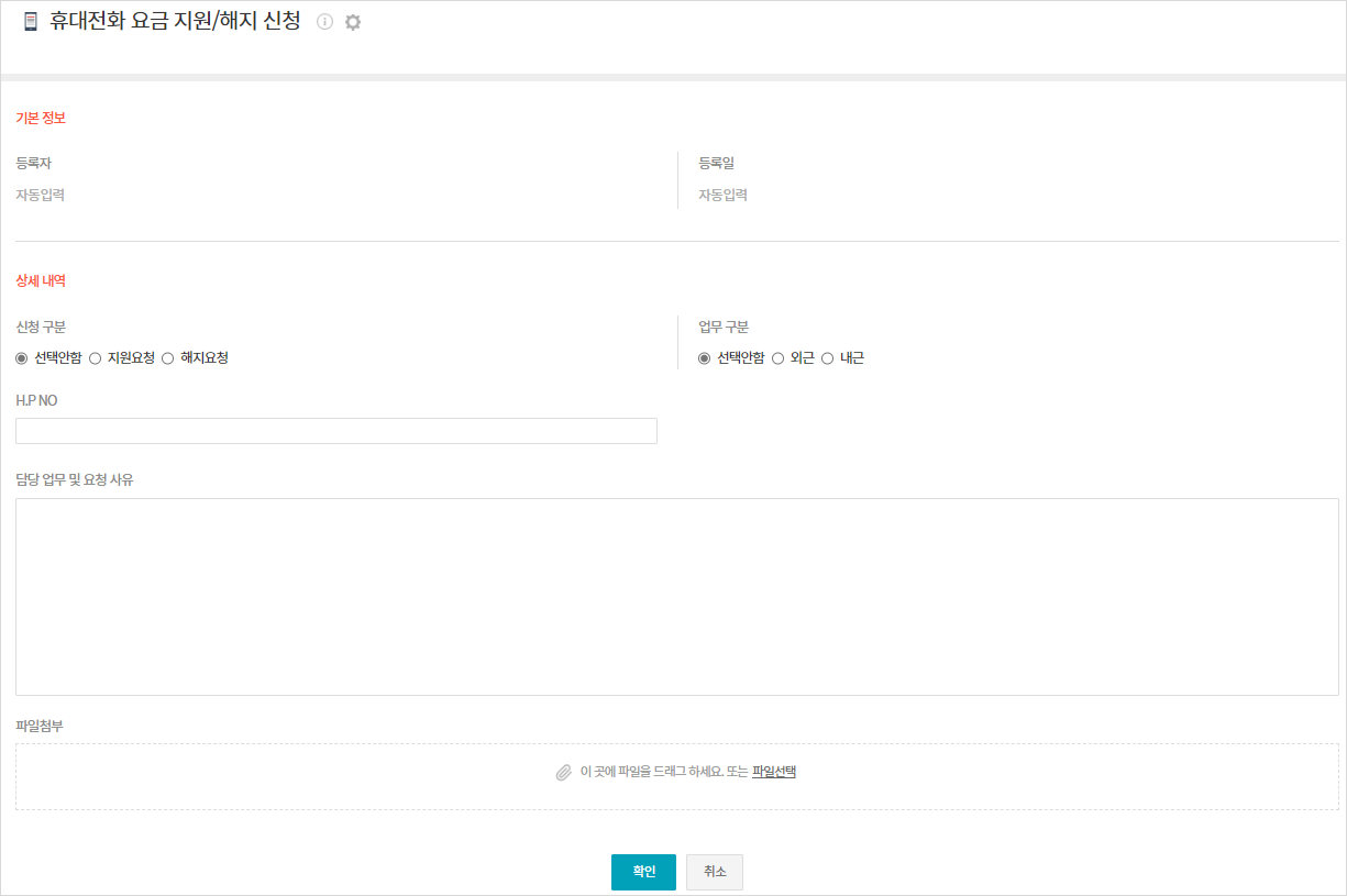 사업 관련 휴대전화 사용 요금에 대해 지원/해지 신청할 수 있습니다.