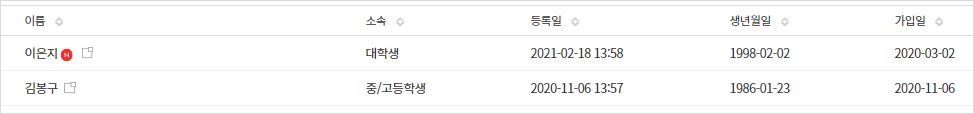 자원 봉사자 정보를 관리할 수 있고, "자원봉사 관리" 앱과 연동처리 됩니다.