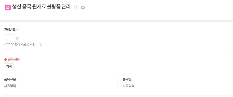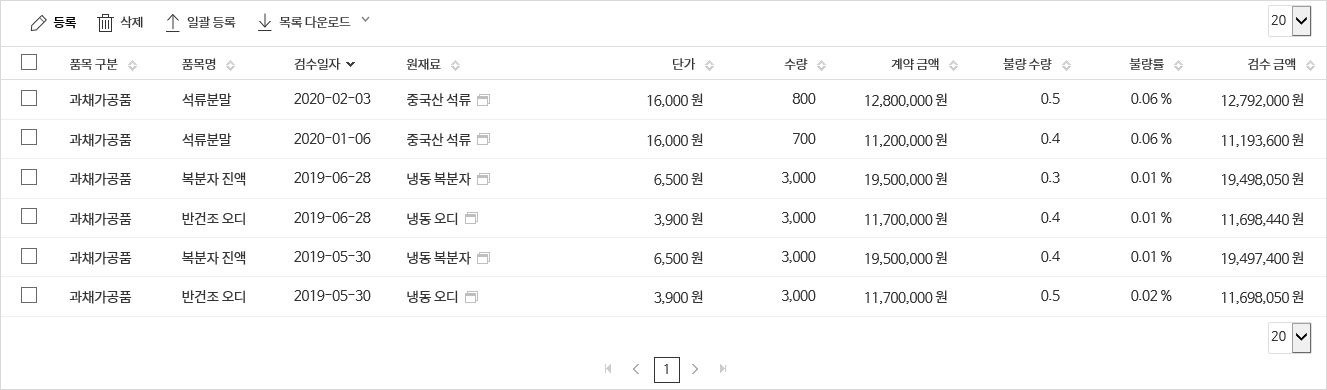 생산하는 품목에 따른 원재료의 검수 내역을 기록하고 불량율을 관리할 수 있습니다.